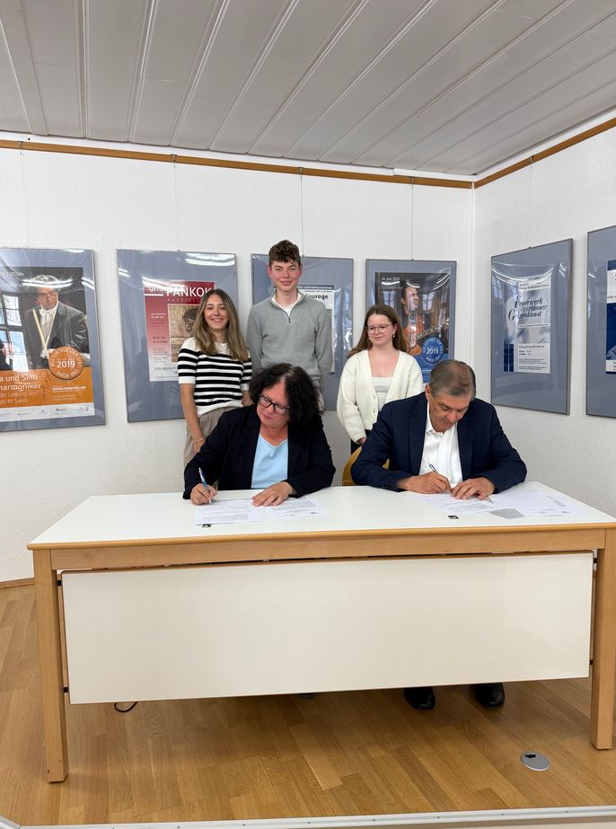 Die Förderung demokratischer Werte und kultureller Vielfalt steht im Mittelpunkt einer Kooperationsvereinbarung, die am 15. Mai 2025 gemeinsam von Schulleiterin Claudia Märkt und dem Vorsitzenden des Dokumentations- und Kulturzentrums Deutscher Sinti und Roma, Romani Rose, in Heidelberg in Anwesenheit von Schülersprecher:innen und Lehrkräften unterzeichnet wurde.