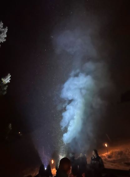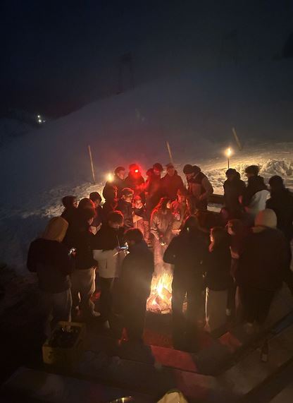 Am dritten Abend sorgte Frau Hilbers mit einer entspannten Yoga-Session für Erholung nach einem langen Tag auf der Piste. Am Lagerfeuer wärmten wir uns mit köstlichem alkoholfreiem Punsch von Herrn Spörl und gerösteten Marshmallows – ein perfekter Abschluss für einen gelungenen Tag.