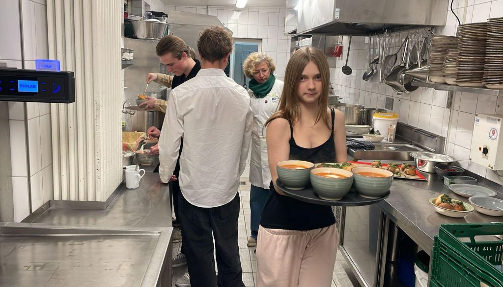 Innerhalb von drei Wochen haben die Jugendlichen aus der Ukraine, Afghanistan, Syrien, Rumänien und der Türkei gemeinsam das „internationale Galadiner“ geplant, diskutiert, abgestimmt und dabei ihre Sprachkompetenz erweitert. Rezepte aus den Herkunftsländern wurden ausgewählt und in einem Menüplan abgestimmt, Mengenangaben wurden berechnet, Einladungen verfasst, Tischdekoration geplant, Moderationstexte sowie Playlisten ausgewählt sowie die Ablaufplanung koordiniert. All diese Entscheidungen wurden in verschiedenen Schülerteams verantwortet: im Koch-, Moderations-, Organisations- sowie Dekorationsteam planten die SchülerInnen ihr Event und unterstützten sich gegenseitig in deutscher Sprache (A2/B1-Niveau). Beim Galadinner am 24.11.2025 wurden 25 geladene Gäste – Freunde, Lehrer sowie die Abteilungsleitung/Schulleitung – bewirtet. Es war ein unvergesslicher Abend mit einem köstlichen 3-Gänge-Menü, an dem die Jugendlichen über sich hinausgewachsen sind.